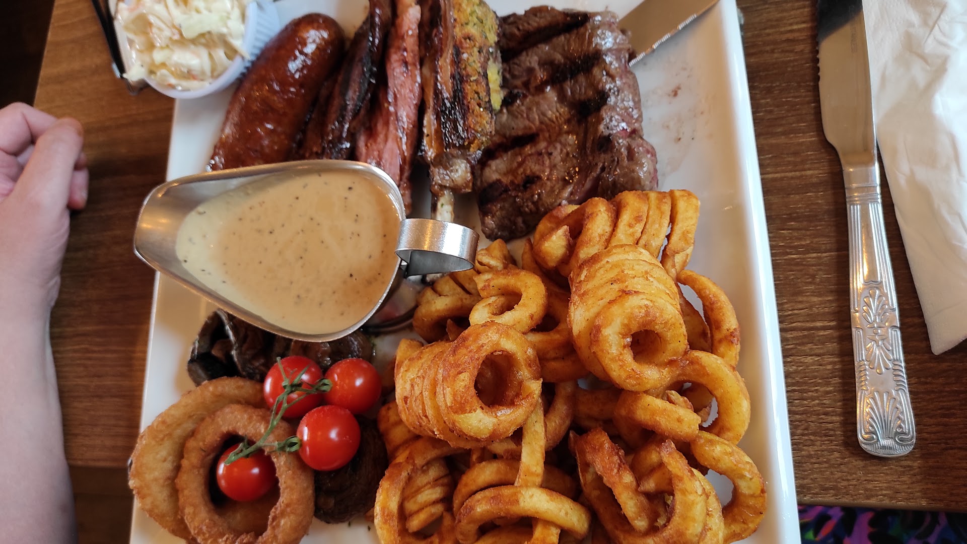 Read moreWhile this would be a great place to meet friends for beers, unfortunately it is not a place to expect a good meal. The Pheasant Inn is divided in two parts, a pub and a restaurant. The pub is lively, has a great selection of beers, and has a nice outside seating area. The restaurant, however, is dated and just felt a bit stale. After reading such great reviews, my wife and I booked a table for dinner in the restaurant. When we arrived, we noticed that there was only one other table seated - and they appeared old enough to be our grandparents. We should have saw the red flag and turned around, but we were there and we were hungry…and all the great reviews. We started with a pate. While not terrible, it was nothing special. Sadly, that would be the highlight of our dinner. For our mains we ordered a steak and ale pie and a calves liver grill. First impression, the portion sizes are shocking. We each had a mountain of food in front of us. The pie looked good, but ended there. It was so salty that it was inedible. The salt overpowered the entire dish and made it impossible to identify anything in the pie. The calves liver, on the other hand, didn’t even look good. Three huge portions of over grilled liver that looked more like rubber. The liver was almost certainly frozen, and then again, over salted. We each had one bite and then asked for our check, which was £70 by the way. Again, I would still go back for drinks, but for drinks only. For a £70 dinner, you can do...