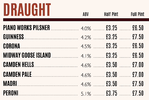 The only downfall with this venue is their bar staff. Their charges are extremely suspicious... every round we would order the same drink and each time it was a different price depending on who was serving you. A friend of mine called them out and the one bar gent could not explain where the extra £5 charge came from on the bill. They are clearly adding on a tip for themselves or selecting the service charge options (probs 15% or what ever is the highest option) rather than giving the customer the choice. One of the bar man was also mixing the cocktail by pouring it from glass to glass and spilt majority of it on the floor (couldn't be bothered to make more) so filled up this ladies glass (stood next to me) with overflowing ice to make up for the minimal cocktail that was actually left after the spillage. If you also look at the photo I have attached you will notice that they charge more for a full pint of Guiness than they do two half pints of the same beer. How does that work?