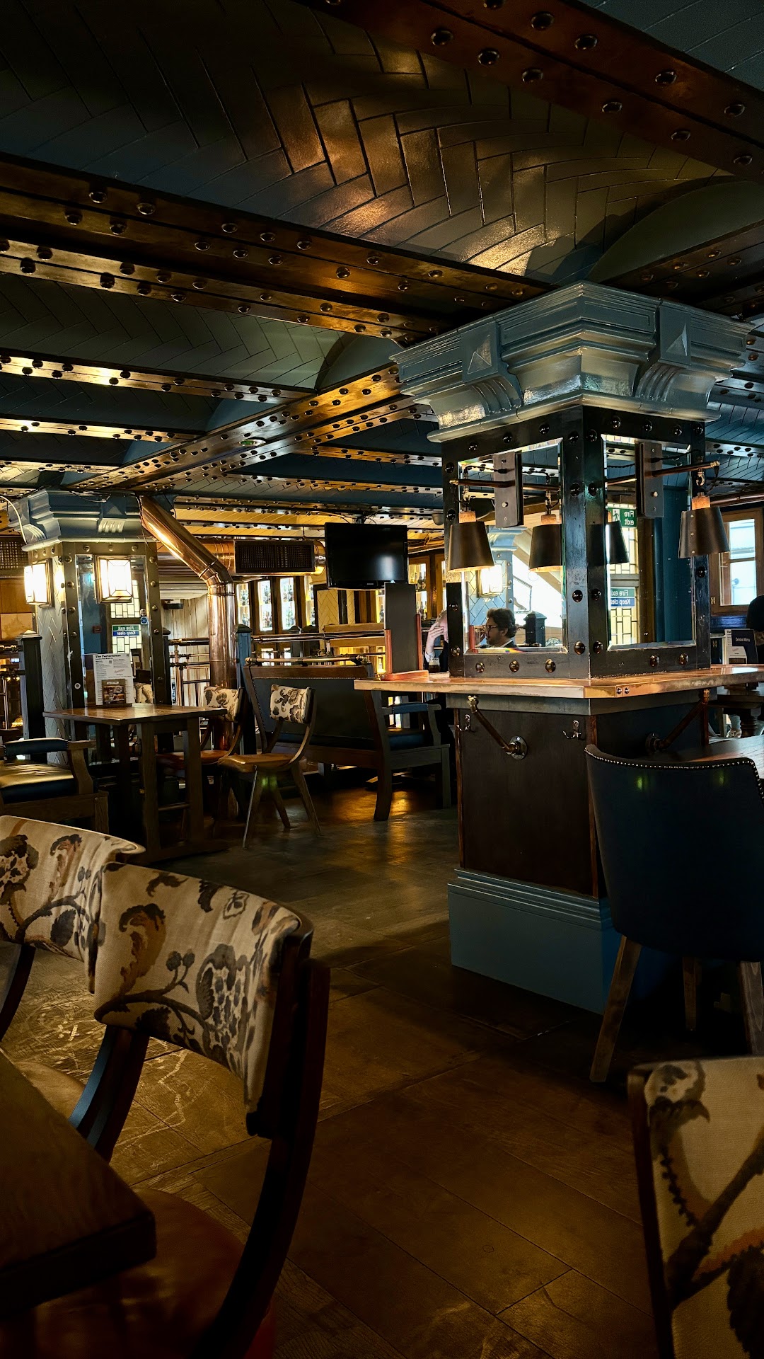 Pros: For such a large and busy pub it has an excellent selection of beers (quite a few low/no alcohol if you are driving), and an outstanding selection of porters and stouts (as you might imagine from the name). The building is all beautifully polished brass pipes, with rooms stretching off in different directions over 3 floors. There are bars on each but only the ground floor bar tends to be open when quiet.