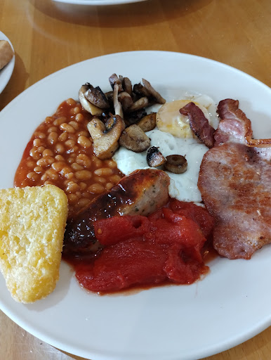 Read moreProper greasy spoon style. Tasty bacon, nice sausage, crispy Hash Brown. Big tasty fried egg. Proper quality food and lots of it. Huge toast (that came pre buttered, which I like for so many reasons) Passed the dry hash brown test (they don't bury it under the beans or tomato making it soggy, excellent, tick) Got my order right by excluding mushroom, happy days.