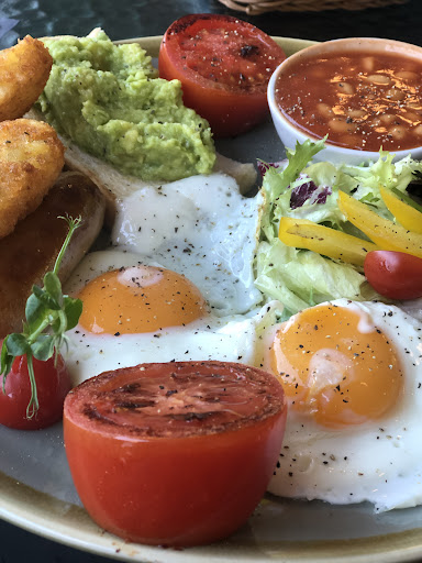 I opted for the Rabbit Breakfast , a very nicely presented plate of eggs , sausages , hash browns, beans , grilled tomatoes ,avocado ( garlicky guacamole) with salad and toast . Overall it was a bit of a strange combination but very tasty all the same and at Ā£8.90 with tea or coffee itās superb value for money. The staff are very friendly...