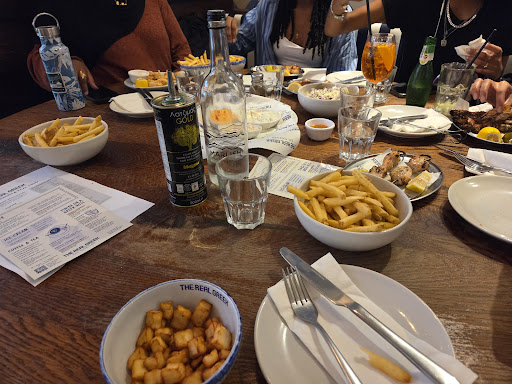 Omg how is everyone bigging this place up. My friends and I came here for her birthday and were sat at an 8 person table when there were multiple non reserved free 6 person tables. Weird but alright. Then our server was just so... rude? Didn't say anything, just what are we ordering. We had to ask for his name and only at the end, not even a happy birthday (she was wearing a huge badge that said it was her birthday, even strangers wished her well). He never smiled, didnt ask how we were, just doing the absolute bare minimum. Alright, fine. The food? Crap. Absolutely bad, there was no seasoning, 2 friends got chicken skewers and one got significantly more than the other, it looked like they bit off the last peice of chicken. The halloumi popcorn tasted gone off, the calimari was bad and the octopus was tasteless. Fine. Then when we were going to pay (took him about 10 minutes to get the bill and we were one of 2 groups in the entire place) we asked to take off the service charge of £11 because as Ive explained before, food and service were both bad to say the best. He looked at the friend who asked like she just took food out of his children's mouths oh my God. He gave her the dirtiest look, scowling at her and did a double take. He asked again and she confirmed, and he went from bare minimum to outright rude. Okay, fine, not gonna leave a bad review over this, but this just pushed me over the edge. We all did the maths of how much we should pay individually and I said £14 for my portion (shared fries and halloumi popcorn). Tell me why he charged me £40. I will say that again because of the absolute and utter absurdity. He charged me £40. For bad popcorn halloumi and half a fries. £40. You must be joking. And because we just left I only saw this on my bank hours after we left. £110 not including service charge for two unseasoned chicken skewers, one of which was severely lacking, 2 large and 2 small fries, calamari, octopus, halloumi popcorn and a three bread sharing platter. For bad food and bad service. The atmosphere was also terrible because there was nobody around and the servers were hiding and the lighting was harsh. Absolutely never and I mean NEVER come here. Chris (or Christian, had to ask your name to even write this review, not even a "hi I'm Christian your server, what would you like") should not be serving people with his rotten attitude and no sense of...