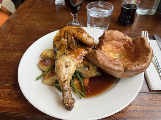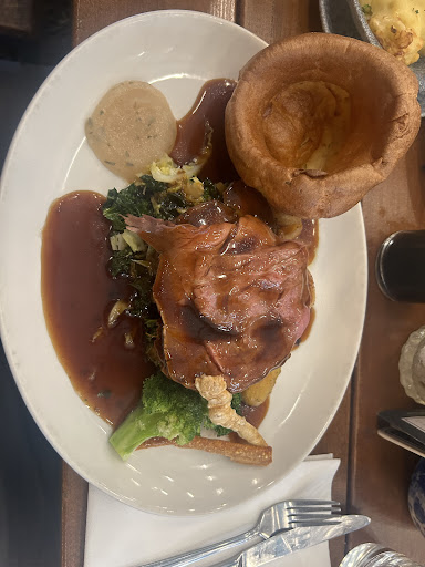 Read moreSunday, Oooh, treat myself to a nice roast .... My first time at this place, I won't be going back. Menu looked great, if on the higher price for a pub. Ordered the Pork .... or Porcetta .... Mmmmm. When it arrived, it looked like a child's portion, aside from the gorgeously flamboyant Yorkshire, Oh well, I'm sure for 21 quid, it'll be gorgeous ..... Hmmmm Potatoes - tasted, felt and looked as though deep fried, if not totally, only finished in an oven to give, slight crisping on base .... luke warm and obviously cooked some hours earlier given texture. Veg - as with potatoes, the carrots cooked, at some point within last week (I do appreciate that veg, potatoes, sundry other items will be pre cooked, obviously, however, sort out how you keep them till service). The cabbage was fine, slightly tough, but I do like some bite. Stuffing - don't quite know how to describe the texture erm .... Meat - well, described as slow cooked, I'm sure it was, but again, however they kept till service, managed to make me feel pity that the pig must have been so parched in life .... and so overly seasoned, I had trouble tasting whatever taste there had been. Crackling - would not be surprised to learn that they opened a pack of scratchings and heated them up. Gravy - I can't. Yorkshire - My Mum would have been proud. Apple sauce - If it hadn't said apple on the menu. I wouldn't have known .... Mimicked look well though.
