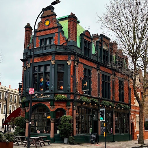 The Roebuck was built in 1892 and is Grade II listed ex-Truman’s pub. This handsome Victorian building has mansard roofing, Dutch gables and a green dome-like roof structure, making it one of London’s most attractive pubs.
