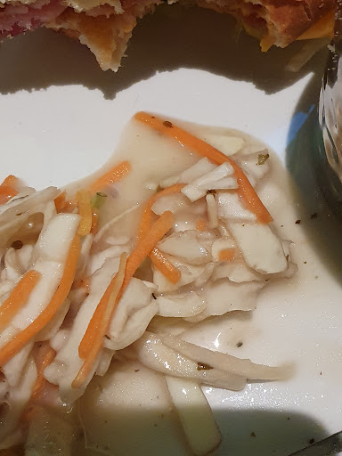 Then there's the food. I ordered the vegan hotdog and it was disappointing to say the least. It came with half a cup of tiny (but tasty) fries and a small spoonful of watery coleslaw. There was none of the advertised vegan cheese on it either. The worst part is that when I bit into the end of it, it almost broke my teeth - it was so overcooked on one end it had gone hard as a rock (pictured.) I had to snap the rock hard portion off and eat the rest as the previous hostility of the bar manager made me think it was probably best not to take it back and complain if I didn't want my entire evening ruined.
