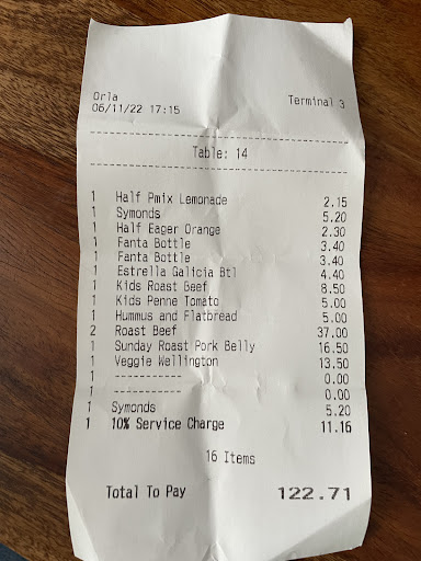 A place deserving of 0-stars! Really, really slow service, and the staff were incompetent & unhelpful. I'd not recommend this pub if you have kids who want to eat. There were so many issues during our attempt to eat here. The lady tried to overcharge me since she didn't know how to put some items on the computer, and then shrugged like its my issue she didn't know how to do it, and I had to change my order. We then waited over an hour for food, and upon enquiring, was told off the cuff, "we''re out of the item you ordered for the kids, you'll have to order something else"! I'm not sure they can consider themselves a kid friendly restaurant when they make kids wait over an hour for food, and still have not even started making it at that point. When I asked to speak to the manager about a refund, I was told, "He's too busy at the moment, can I come back tomorrow to complain"!?!? Ordering took so long, and plus waiting for food - we ended our almost 2 hour "experience", by getting a refund, and left having not eaten - our little guy in tears because he was upset he'd waited for so long and not getting his food. I've not encountered service this bad in a long, long time, avoid this place. And it seems I'm not the only person to...