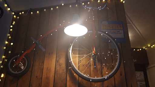 Wonderfully friendly staff, beautifully decorated inside area , adorned with all things cycle, this quirky little cafe also offers alot to the community providing a place for local groups and people to meet in comfort and safety,