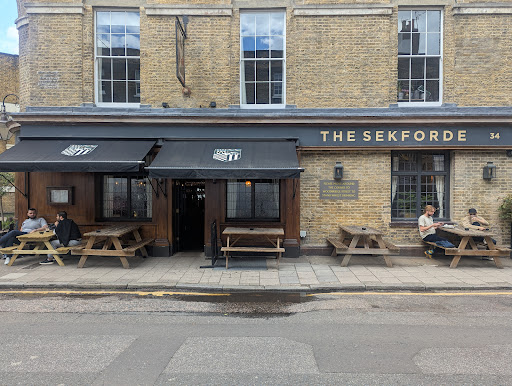 Read moreThe Sekforde is a delightful pub that offers a unique blend of traditional charm and contemporary style. The pub is housed in a beautiful Georgian building and boasts a warm and inviting interior with wooden floors and panelled walls as you walk in, and nice exposed brick walls and wooden beam ceiling downstairs. The bar features an impressive selection of craft beers, ales, and ciders, as well as a range of great wines and spirits. The Sekforde also has a lovely outdoor seating area that is perfect for soaking up the sun while enjoying a drink or two on the quiet street on a nice day. Or on colder nights there's nice big open fire to warm you up. The pub's location in Clerkenwell adds to its appeal, with it being only a short walk from many other great places and things to do/see in London, this is a nice place to stop in for a pint or to finish the day in. Whether you're looking for a cosy spot to catch up with friends or a lively venue for a night out, The Sekforde is definitely...