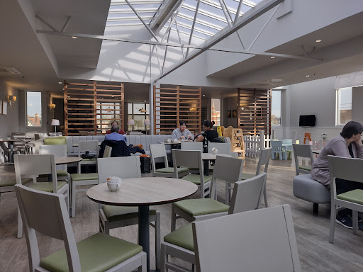 Located at the topmost floor of Pearsons, this restaurant has a variety of options spread out for your choosing. The environment and/or setting is very airy or at least gives the impression though not outdoor. The menu covers traditional English breakfast, sandwiches, salads, Pastries, cakes, fish & chips etc. The kids are not left out with a variety of options to pick from including purees. Once choices are made and payments done, you get your cutlery from a side bar which also doubles as the condiment section. The menu items are not too expensive. I loved that there are ramps (2) available for both wheelchair and stroller access. These are not to far from the lift. There is a play area for toddlers and of course high chairs (which require a lot of cleaning before use). The staff are nice and helpful. Tables are wiped down after...
