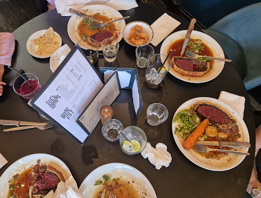 Upon receiving our food and being greeted by the staff with "beet Wellington", we experienced a slight confusion due to our initial assumption that we had ordered beef Wellington. The food was somewhat disappointing, there was no special treatment for the meal. The Yorkshire pudding was unfortunately burnt. The roast potatoes were slightly overdone. In summary, the meal was rather disappointing, with no significant advantage to the meal at all.