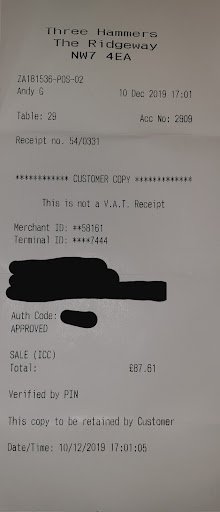 Posted on 11/1222: I went to Three Hammers for the first time a few days ago with a friend for a meal to celebrate moving to the area. We had a good meal and decided to book again for today (11/12/22). We had our booking confirmed by email and received a further email advising us to arrive within 15 minutes of our booking time which was 1:15. We arrived on time but were told by the assistant manageress that we would have to wait at least 30 minutes before we could order our food, and that was only if we ourselves could find a table (despite being told at time of booking that table 9 had been reserved for us). We asked the assistant manageress if she could do something to accommodate our booking as we really didn't have the time to go hunting elsewhere for lunch as that would mean we would be late for a local rugby match. She was bruske, brushed aside our concerns and told us they were 'busy'. We had no choice but to leave hungry, and that was after asking her why an email or text could not have been sent informing that the booking could no longer be accommodated, to which we just got shrugged shoulders as a reply. I have never received such pathetic customer service, and needless to say will not be frequenting Three Hammers again or recommending the location to friends. I'd advise anyone to book at Claddagh Ring on Church Road, Hendon instead. They always honour their bookings and food is amasing! Three Hsmners, you need to wake up to what customer service means! Otherwise your customers will go elsewhere, which is...