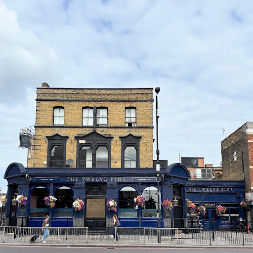 The Twelve Pins is located on a busy junction on Seven Sisters Road in Finsbury Park, North London. The nearest Tube is Finsbury Park which is just across the road.