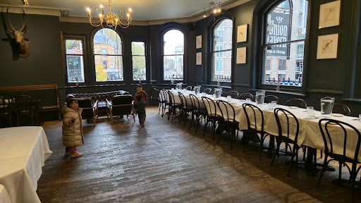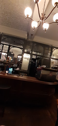 Read moreA classic, elegant, beauty of public house tavern hidden & worth finding. This old corner pub in the hidden borders of Clerkenwell is a Victorian beauty. A large hall bar with central round cornered, square bar sitting central. There's a well identified dining area with open kitchen separated from the rest of the bar by a vintage, decoratively cut glazed partition & carved wood arch. The drinking hall is embraced in decorative etched & pattern painted glazing & original cut glass mirrors in vintage frames. There high low seating & a calm atmosphere of local friends. An excellent selection of beers are served with grand 70esque tunes & a very rare excellent, understated pleasantly helpful, engaged service, under antique cut glass droplet lamps & complementary modern chandeliers hanging from an elegant patterned ceiling. The corner stairs echo to when this was an edge of London tavern, last stop in or out of the city. This cultured, handsome cut glass gem is a haven of calm worth exploring past...