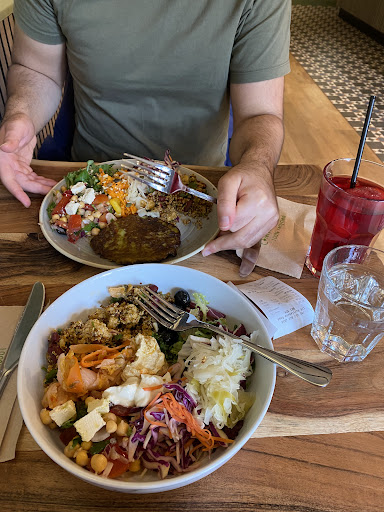 Read moreMain point: Excellent food. We were across the road about to make a sushi restaurant booking for lunch but saw this place and it called out to us. We came here instead. Looked empty but we were greeted when we entered and showed the menu. Beautiful interiors. A main we wanted was not prepared today so sadly we ordered another main. The food we had, Buddha Bowl and Fritter Main looked similar apart from the single fritter as a dollop of hummus between the two. Very curious as we expected more fritters as a main instead of one. Presentation wise, very colourful and vibrant. Excellent variety and we enjoyed the different dishes on one plate. We loved the flavours. Husband is obsessed with the kombucha and said it tastes like yoghurt. Overall food was excellent. We were offered 20% for the first month of opening, but we were charged full price by mistake. They gave the proper refund after I realised and enquiredl. Staff were very new to the system, had some bouts of confusion here and there, and had a lot of fine tuning to do, still being shown how to do things behind the counter by the manager (first weekend since opening), it’s interesting to observe as a customer but it’s a new place and it will be better with time. Staff are, above everything, enthusiastic and friendly. Thanks for the lovely plant-based meal...