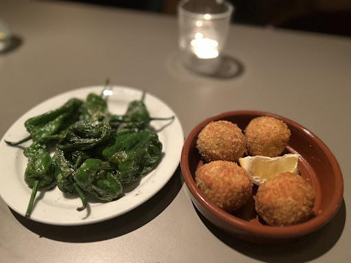 We ordered 6 dishes between the 2 of us which was perfect. The prawn and crab croquettes were perfectly cooked and beautifully golden in colour, very tasty and fresh. The grilled artichokes were beautifully fresh and tender with a nice amount of spice. The ox cheek with mash and jus was the star dish for us, very tender and deep and could have eaten a lot more of it. The chips were great, well seasoned and cooked. Seared scallops also very tasty and not overcooked which is a rarity. The chorizo was our least favourite dish but still very tasty and we ate it all. A larger portion compared to the rest of the food but less delicate as a food.