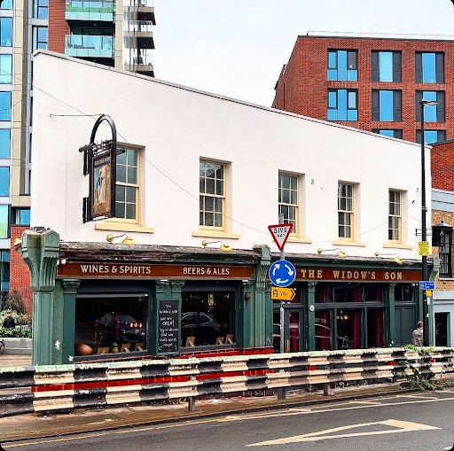 The Widows Son is located in Bromley-by-Bow in the East End of London. The nearest station is Devons Road on the DLR, Bromley-by-Bow Tube is also close by.