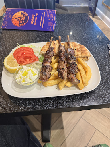 Every dish I've tried has been a delight. The hummus is creamy and perfectly seasoned, a great start to any meal. The chicken gyros are tender and packed with flavour, while the pork gyros offer a rich, savoury taste that leaves you craving more. The chicken skewers are juicy and cooked to perfection, and the chips are crispy and golden, the perfect side to complement the main dishes. The bread is always fresh and a great addition to the meal, perfect for dipping in the delicious hummus.