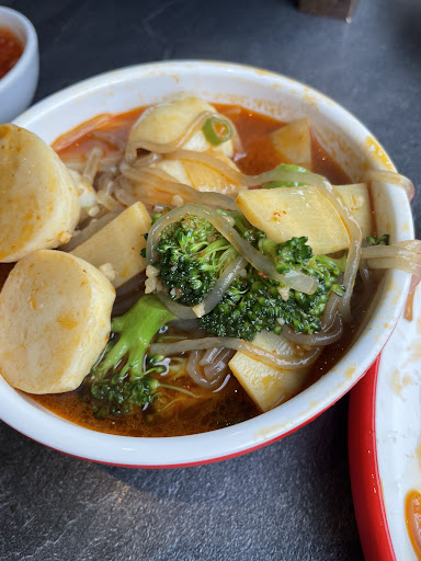 The special dish, I ordered, was fish ball, squids, king prawn, bamboo shoots, broccoli and sweet potato vermicelli. It is spicy too but very watery 😐 Everything in this dish I guess is steamed and they come together in a bath of the sauce. The squids were very small. I didn’t like the king prawn there as I had to take the shell of myself which was not fun and easy 😐😐