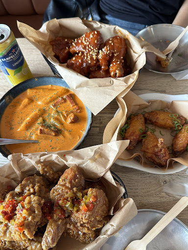 Been there 3 times so far in 1 month! I think that speaks for itself. Found it by chance on the way to H Mart. The first time, we were shocked at how long it took for food to arrive. It took close to 35 min on a weekday, with a few deliveries in between. We waited because we saw the ladies across us, who were here before us, only get their food just 10 min before ours arrived. So glad we waited because boy, the best fried chicken ever! We tried the yangnyeom and original which were so good! And I’ve been LOOKING EVERYWHERE for good Korean style crunch! This is it! It was so good that we came back again that weekend. It also took 30 min exactly and the honey butter was lovely although too sweet for me to order again. Many people came in and out. It was popular. And we went a 3rd time 2 weeks later and tried garlic soy. It was amazing! The chicken is juicy in all parts, the crunch was just CRUNCHY, and the owner was very kind to chat or assist us if we needed anything (like gloves, wipes, etc.) since they don’t have a sink.