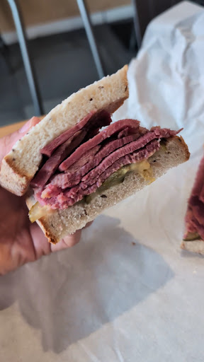Read moreGood place to grab a quick bite to eat at lunch, small but interesting menu including salt beef, chopped liver and soups. The salt beef sandwich was simplistic in its brilliance, optional extras are available but the default is with mustard and pickles only. Sometimes less is more. The bread was soft with a slightly chewy crust and tangy caraway seeds to complement the generous helping of salt beef. Personally I could have had more mustard but I'll definitely be back to sample the other options on offer. Worth a visit if you...