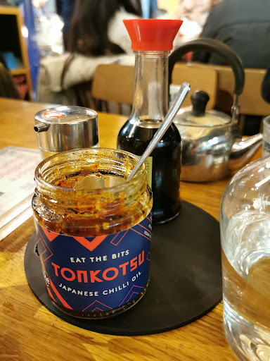 Tonkotsu Battersea was buzzing on Sunday evening, a welcome sight compared to quieter spots nearby. We waited a bit for a table, but the friendly staff sat us down quickly. Unfortunately, our table wasn't quite clean, with some sauce from previous diners.