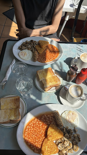 Best greasy spoon (no disrespect) ive found in (greater) london. Nice spot to look outside on a nice day, and convenient having midland road station just over the road. Was welcomed as soon as I came in the door. The lady took my order, and I panicked. I didn't read the menus enough, thinking "1 breakfast please" would be standard parlez. It seems they have an extensive variety in how you can have your breakfast. I just picked the first one I saw. I wish I'd have got some chips and made it a brunch 🤣 A very friendly lady brought my food over within 5 minutes. Every single item on the breakfast was lovely. I've had a few shoddy ones in london, so this was a gem to find. The tea was nice, too. Paid on card, exchanged pleasantries, and wondered off..... belly satisfied and ready for the days...