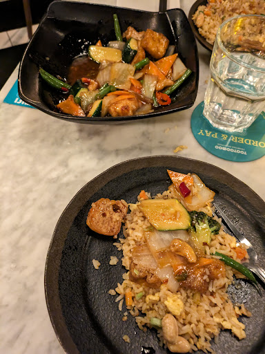 Read moreI have walked by this place a lot since it open and have heard good things about it so we finally went in. We were greeted by some very friendly people and told to go to the back which is very nicely done up so we all had high hopes. The waitress was quick to take our order but lacked any sort of nice manners, she never once came back and asked us how our food was or if we needed anything, we had to call her back for water, if I could do it over I would have held back most of the tip. I could almost understand this if it were very busy but it was only us and one other table being served there. Food came to our table very quickly. The wanton soup was good but the Pad Thai was the worst I have ever had in my life...very sugary with a ton of noodles and very little else...no corriander even. I had the same dish just a week before at a place next to Kings Cross for less money and far much more meat, flavour and everything, worlds apart! The Szechuan Chili stir fry was again more like sweet and sour chicken, it did have some fresh veg but far too much sugar and again skimping on the meat. Duck was poor too. Dumplings were good. Drinks are overpriced, £7.50 for a pint? central London club prices. Far too costly for what we got, a hole in the wall take away has better flavours than this, will never return or...