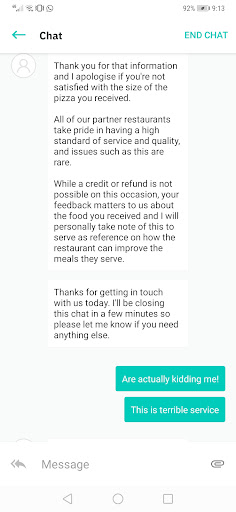 Read moreI order from here all teh time however this time will be my last. Plz do not go here. I ordered 2 pepperoni pizzas and other sides Non halal. They sent me 2 large halal pepperoni pizzas When i complained tgey told me all meat is the same, after having to explain why i dont eat halal pizza due to religios reasons the guy who i spoke to said he would exchange only 1 pizza. I then said what the point of that. Finaly he said he would exchange the pizzas He asked if we had wanted the pizzas back - i think to resell. I finaly got my new order and it was the same as the first order (not real pork) I havent called them again because i believe they may have spat in my food by the way he has made me feel when i spoke to him. This is the worst £27.99 i have ever spent. I have just bought chickeb and chips for myself and my family.