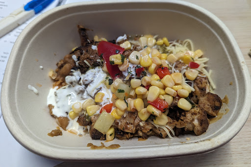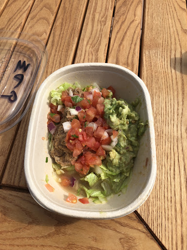 I ordered a medium salad bowl which (as a default) comes with a lettuce base, a choice of beans, a protein, cheese/sour cream, and salsa.