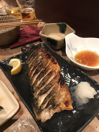 We ordered the following to share: sashimi (11 pounds) a grilled salmon for 11 pounds (which came out as literally JUST a piece of salmon on a plate), grilled asparagus (which was literally ONE PIECE of asparagus- ONE!), grilled mushrooms (ONE MUSHROOM!), cold spinach salad (which was literally again, just cold spinach)....... After eating all this, we were still starving as we had basically both had half a piece of salmon and a mushroom: we debated ordering some more but firstly we felt we had already spent enough money (30 pounds) on such little amount of food and also, would we really get more full from half a piece of asparagus?