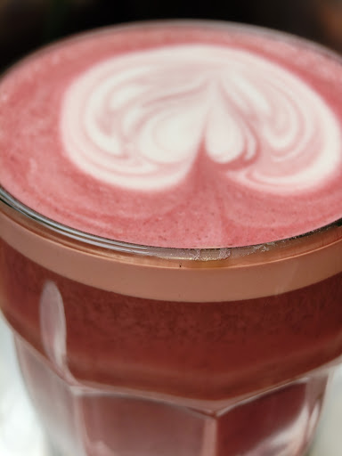 We have been to the Tram Store previously, and it has a very nice feel to the place, plenty of hanging plants, with bare wood and copper accents. Inside, on every table was one person on a laptop, and as we were with a little one we ended up sitting on one of the outside tables, which also soon filled up with.... laptops and singular people. A trip to the tattoo studio next door resulted in two quick coffee's and two Welsh rarebits, the pictured coffee was beetroot and cacao, which had a rich earthy taste, and an Americano which was served in a paper takeaway cup ? Not sure why, as the beet one came in a glass tumbler. The rarebit was very good, with a nice thick, edge to edge layer of the mix on fresh sourdough, this was accompanied with a small dressed salad and fig chutney, very tangy, to compliment the cheese. Nice quick table service, the only thing I will say is that the inside seating area did feel like you were intruding into a quiet office area. The outside did eventually end up feeling the same just as we were leaving, maybe this is the usual mid week, mid day customer base that come in to work on their laptops. Great food, but the atmosphere was a...