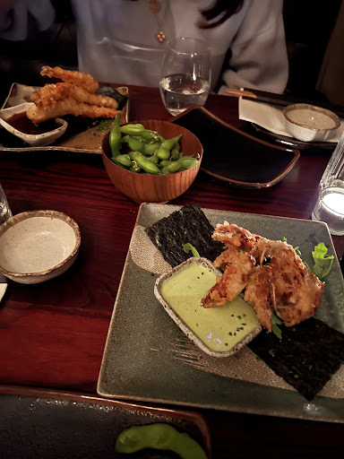 With a meh selection of dishes to choose from, I ordered the tempura, prawn and a soft shell crab, both fried very lightly have a temper could have been even fluffier, Ponzu/yuzu soya sauce did not go well as the user overpowered the flavours and was wasted on the tempura , with ordering the sushi, the selection of sashimi and sushi rolls, the sashimi was fresh and clean. However, the sushi rolls does sashimi was ruined by the overcooked rice which was so heavily compacted, reminding me of supermarket, standard sushi, wasted good sashimi on terrible rice, the rice also needed more mirin, the sushi I would say is on level to Wasabi or itsu and that is not what you want to see from a restaurant.