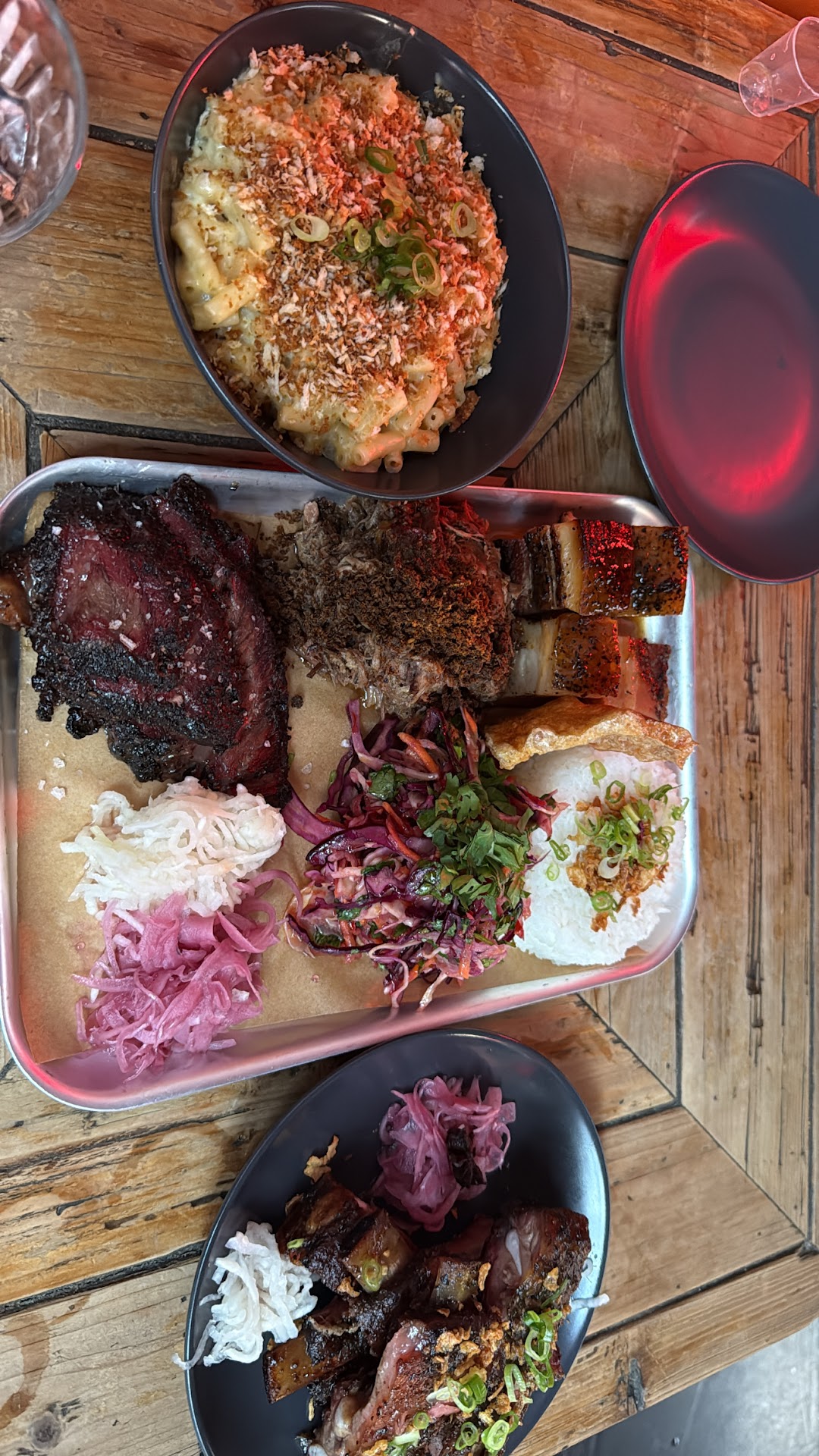Read moreReally strong concept, not so good execution - I wanted to love this so bad. Acidity is a fundamental part of Texas bbq and it is used in Texas bbq to tickle ur palette when it is combined with sweetness and cutting through smoke. Although the meats are served with pickles (that are not very acidic to begin with), I think there is a lack of acidity in all of the meats. The mac and cheese was really good though some of the best if not the best I’ve had in London. It had a great smokiness that complimented the Gouda exceptionally well. My favorite meat was probably the pork rib even though the ox cheek def had a really interesting (good) texture. I was not a big fan of how the pork belly was cooked (might be a me thing) and how dry it was (def not a me thing) - the sweet glaze was good but the fact that it wasn’t lacquered on didn’t do it or the pork belly any justice. The pulled lamb was moist but most of the lamb flavor/smoke is lost due to the overwhelming flavor of the (untoasted) cumin, which works pretty well in chengdu style lamb, but not so well here. All in all it wasn’t a terrible meal even though I was pretty underwhelmed by all of the meats (my reason for traveling from Camden).
