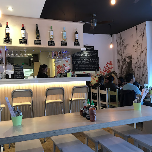 'The food here is not that great yet pricey for what it is, with a limited menu. A bowl of rare beef pho cost £9 but had a small noodle portion. The pho broth was quite salty and a lot of black pepper and crispy fried onions had already been added to the bowl, taking away the diner's choice of how to season. The spring rolls were burnt and had split. See photos.'