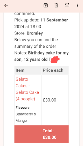Read moreI ordered a birthday cake and unfortunately it's a very disappointing experience.