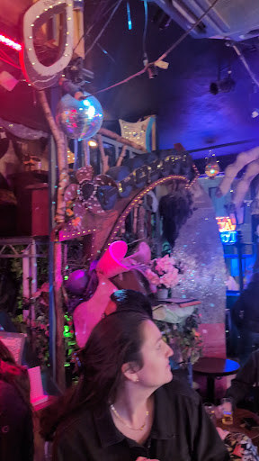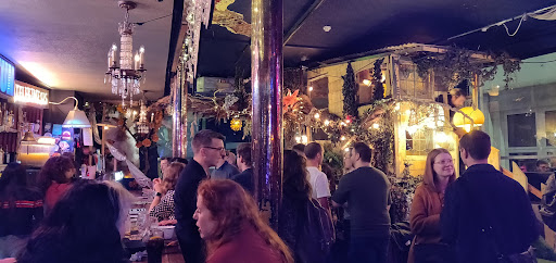 Vaulty Towers is a truly unique and eccentric pub located on Lower Marsh in Waterloo, London. It's run by the same creative minds behind The Vaults, the underground arts venue beneath Waterloo station, and this theatrical connection is evident in its decor and atmosphere. The pub is filled to the brim with quirky and imaginative decorations, props, and set pieces from previous theatrical productions. You'll find a random yet charming assortment of furniture and unconventional seating arrangements. Expect to discover distinct and surprising nooks, including a raised "hide," a fantastical "Pink Cave," and even a table within a "treehouse" accessible by a small staircase. You might find yourself sitting on a giant sparkly crescent moon or behind camouflage netting. The decor has a deliberately gaudy and homemade quality, adding to its unique charm rather than feeling slick or overly designed. Expect to see random signs and props that contribute to the fun vibe. While specific food details vary, Vaulty Towers offers "creative bar eats" to accompany their drinks. They serve a range of beverages, including craft beers (with local options), and a diverse selection of spirits. Notably, they often have cocktails on tap, such as espresso martinis and draft Negronis, sometimes served from quirky contraptions. They also offer boozy slushies.