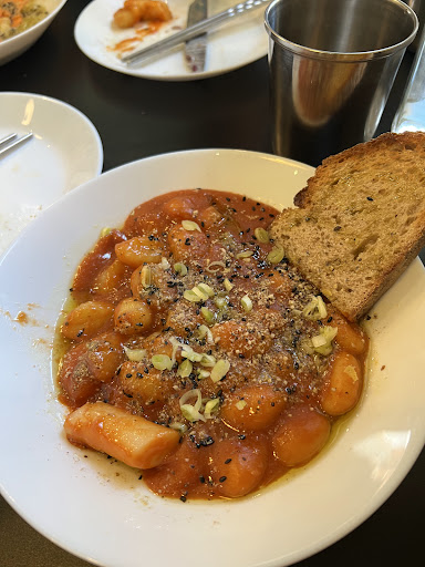 kimbap: 6/10 flavour was good but the pieces were TOO big so canāt eat it without the roll falling apart. On a bed of spinach with sesame seeds and I loved that baked pasta(?): 5/10 I didnāt like it but he did. It tasted way better than it looked (looked like frozen pasta from a box that has been tilted out) the pasta was soft like you would expect in a pasta bake. Came with a huge salad gnocchi: 7/10 a mix of gnocchi and Korean rice cakes and I enjoyed it. Had a slice of bread pesto gnocchi: 7/10 same as above but pesto My friends also got a virgin mojito which had kimchi juice (but u couldnāt taste it, probs just for health benefits) and a blue tea drink? The presentation could defo be improved but it was super healthy which is my fav part