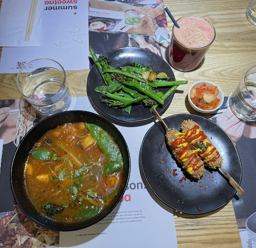 Experienced Wagamama after many years today and must say the food provided by the kitchen still tastes the same, this means that the chefs in the kitchen are being trained well by the company standards. I had ordered duck gyoza as a starter along with some kimchi, the duck gyoza as a starter is what I had expected, the portions wasn't too big which meant that I would still have some room for the main meal, the texture of the duck gyoza however was different to what I had expected, it wasn't the soft dumpling texture but was crispy instead; first time experiencing the texture of duck gyoza in this manner to be fair, but, seeing as how my main meal tasted the same as I had remembered many years ago I'm pretty certain that is Wagamama's brand standard. As for the main meal I had ordered the firecracker, which is a spicy dish and in my opinion with a rather unforgettable taste. The presentation of the food was splendid, it didn't look unappetising, far from it... The dish looked vibrant, the sauce looked how it should do and the use of garnish was well received by the eye. From the first spoonful of the dish I immediately got a sensation of nostalgia of the taste I had many years ago which took me back in time for a moment. The second spoonful brought me back and had me sweating reminding me of the dishs name 'firecracker'. For dessert I had the banana katsu with ice-cream which again had brought back memories, the banana was warm with a lovely crunch to it, mixed with the ice-cream and it's as if the ice-cream melts in the mouth. The service was fantastic with the hosts/waiters checking up on their customers often to see if they needed anything which was great for me as I sweating from the meal and needed an extra tissue to wipe the sweat off. I could also tell that the hosts and waiters caters to their customers needs as I had requested the host/waiter Juan for a bottle of sparkling water unopened, without question I had almost immediately received the bottle of unopened sparkling water along with a glass of ice which was a nice touch as I had not thought about asking for a glass let alone some ice. I had no further requests and everything went as one would expect. The size of this location is also quite large and would make for great events for people that organise large parties and such, also, looking at the venue from the outside, one wouldn't be able to see the guests dining which for me is quite nice, being able to enjoy my food in peace without the glances of passers by (especially seeing me sweat from the heat of the main meal). The location is also well lit and ventilated and didn't feel stuffy, above all the location was clean so one could recognise that the place is...