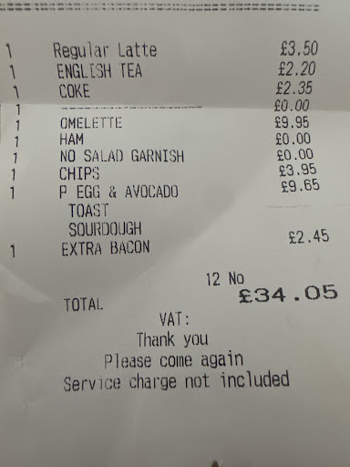 Read moreMy son and I had breakfast here this morning and I left feeling frustrated and robbed. The first waitress who served us was welcoming and polite. The prices are very expensive and the food is nothing special. I ordered egg and smashed avocado on toast which is offered together, with extra bacon. When I went to pay for the bill, it stated £8:95 for egg and toast, £2:45 for bacon and £3:45 for avocado. The avocado came in a separate tiny serving dish and was no more than a quarter of an avocado and barely ‘smashed’. I said to the girl on the till (who clearly didn’t want to be there and doesn’t even look at you when serving) that the avocado and eggs were ordered as a set and not as an extra portion. She was very clearly irritated and did not respond but went back to her screen and printed another bill which was changed and 60p less. I understand that business’ need to make money but £3:45 or £2:85 for basically 2 mouthfuls of avocado is a joke. The service was a bit slow. Most of the staff are rude and basically just stare at you with an...