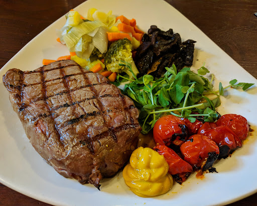 In regards to the food, the menu promised great food which was a complete disappointment from start to finish. I had a Rib-eye steak that tasted great and was latticed with lovely grill lines but everything else on the plate was tired and cooked to death, it very much put me in mind of how my Nan used to cook vegetables, not in a good way either. It was unpleasant to eat.