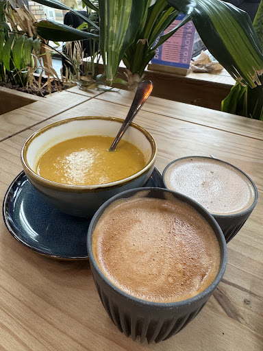 Read moreReally disappointing. Waited ages to try it and today I came specially from far away to check it out. It was always busy before and today was a bit quieter. I checked the menu before and it did say oat milk as standard. I think they have to mention that verbally, and it doesn't say on the menus inside. Inside there is no food they should say this is the menu and it's all made specially. Even croissants and other stuff wasn't out on display but there was a menu I'd feel silly to ask if it's not there. Even if you try to order from the table it doesn't say on the online menu that it's only oat milk. I drink all types, almond, whole milk, soy but you gotta make people aware it's not normal cow's milk. The presentation for a cortado was horrendous. They need to do a lot better. £2.30 for fake milk and bad presentation is not worth it. Cows milk is expensive real dairy and cream. Taste was okay but really bad aftertaste and can't taste the coffee well due to the disgusting alternative milk used. Decor is nice and location is really nice. The service is quite good and friendly, but just because of that I think people review a bit higher.