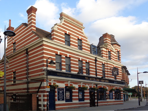 Originally called the Buck's Head, the pub was rebuilt around 1898/1900 and was operated by Hoare's Brewery until 1933 when they were taken over by Charringtons. It was renamed in 1990 to the White Lion of Mortimer when it was taken over by Wetherspoons, who had the pub until 2018.