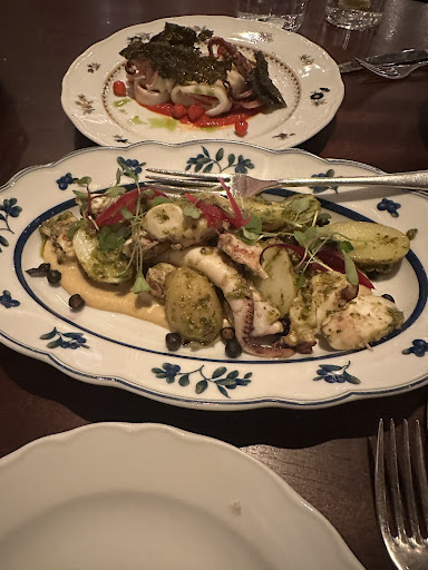 We ordered the bread, warm octopus salad and calamari to start, followed by the sirloin steak and truffle pasta for mains, served with a side of spinach. Note that a large number of items (including a variety of steaks and seafood) are off menu and only listed on the specials board. We finished with the hazelnut mousse and cheesecake. The food ranged from decent to excellent depending on the dish. The calamari, spinach and desserts were less exciting, Iād say not bad but not great. In contrast the truffle pasta was excellent but best of all was the steak. This was a quality piece of meat cooked to perfection!