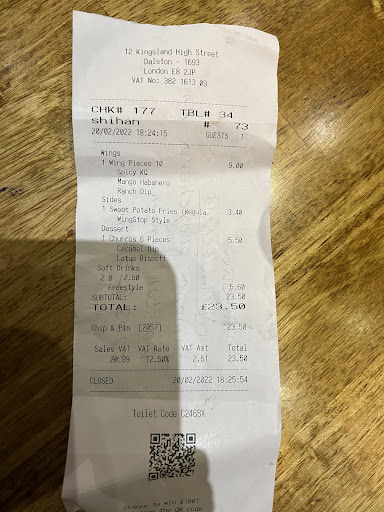 Read moreI am writing this review regarding my experience at Wingstop Hackney on the 20th of February 2022