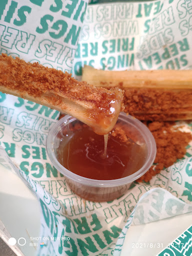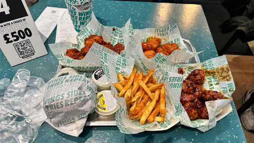 Read moreVisited the other wingstop branches in London so I kind of knew what to expect for the food. Firstly the store itself is the newest branch however it isn't the cleanest, tables were dirty, loads of old food down the side of tables, we ended up moving tables because it had dried sauce on it so I really don't know when it was last cleaned. They also have a loud door that is in constant use by staff and also goes down to the toilets. The door swings back so loudly and regardless of where you sit the noise from the door is extremely disturbing. Anyway a fairly long wait for the food was about 25-30mins in total. Food arrived wasnt piping hot was just about warm. They didn't have sweet potato fries which was a let down, ordinary chips were just bland, didn't enjoy them. Tried the burger and it was pretty decent so I would probably try it again but at their other branches. Also tried the churros and they were pretty good, didn't look like the picture but still flavoursome. Staff .. they're okay just doing their job I guess nothing above and beyond. Store is also really busy with delivery drivers. I doubt I would return to this particular branch but I would definitely recommend visiting the others. Spent £36.80...