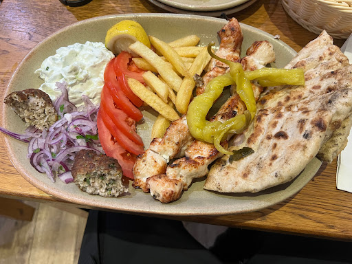 I'm not going to advise people NOT to go here. I think I just caught the owner on a bad day. Obviously owning a restaurant at the moment is a stressful time but it was my first time at this place and I was really looking forward to it. This is what happened I ordered gyros and greek sausage kebab When told me the price it seemed higher then I expected. He ASSUMED I wanted a large portion. Sure I should have specified but he should have clarified my order. He got quite annoyed with me and made me feel quite uncomfortable He changed the order and changed the price. Showed me the machine to tap my credit card. That's when he lost his temper. I tapped with an American Express card. He said I should have told him if I was going to use Amex. Not sure why because their restaurant is on the Amex website and there is no sign to say No Amex Accepted. He started accusing me of using Amex only to benefit me. This went on for a few minutes. I didnt say much I waited outside for my order. Ibcoukd still here him raising his voice towards his staff about the crime I had committed if using Amex. But I think they made him realise he was in the wrong He called me when my food was ready and did a 360 and was overly polite and gave me my food. Its shame I disnt get an apology or something complimentary as an apology I took the food home and the Gyros was nice but I expected it in a wrap with chips in it. This was just gyros and chips. The greek sausage was good quality but it came with a really cold pitta (I live 1 minute away), salad (fresh) and no sauce at all. I had to go to the supermarket and buy some.