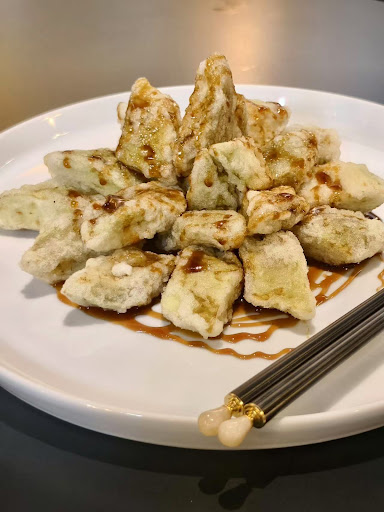 "Crispy Tofu with Golden Coating". This should be fried until golden and crisp (as the name suggests). Instead, we got a plate of flabby soft tofu, not fried at all, with the 'golden' look mimicked using what tasted like turmeric powder. £13.80. It essentially felt like a cosmetic imitation, as though someone just tried to recreate the picture with whatever they had in the kitchen.