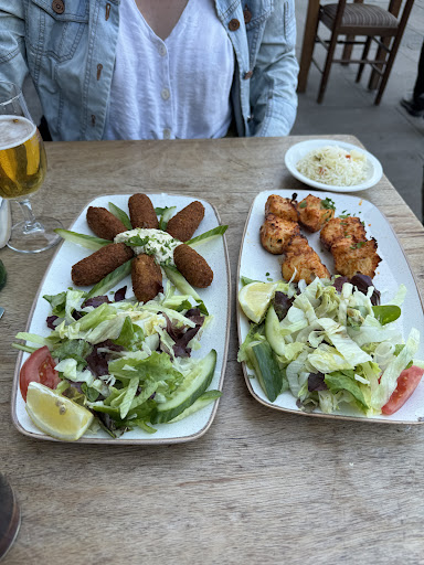 Firstly our server/s were on point! So the review doesnât reflect them but reflects our food. The restaurant had been on the to try list for a while having lived close by for a while. Unfortunately we were severely underwhelmed by the food. We were started off with some complimentary hummus and pita, which is a nice touch. It wasnât a massive dish helped tie us over till our mains came. We shared the Chicken Shish and Falafel mains. The chicken and falafel were ok. Presentation was ok, besides the silly amount of lettuce dashed on the plate. There was nothing particularly spectacular for us, I think the falafel was nice but lacked just a bit of herby freshness and could have done with being a bit crisper but this is more just a preference. The chicken was again ok. I do feel there are a lot better places for Turkish food about, that are also cheaper and offer a greater selection per dish. There wasnât much to show for each being at ÂŁ16.90 + ÂŁ16.95. The dish was mainly lettuce. Iâm disappointed because it feels theyâve tried to bulk out the meal with leafy rubbish, I love salad but that salad was pathetic, something I would have fed my pet rabbit. We also ordered chips which Iâm glad because I would have left hungry. The chips also werenât anything special, bit soggy and bland. Other Turkish places Iv been have been seasoned with a good crisp fry. Generally the quality of the food doesn't warranty the price tag, neither does the portion size, nothing of considerable size. I would not come back anytime soon. Sorry. Much better options for Turkish around. Most Turkish give you a loaded plate with a good variety. Also the âchilliâ sauce wasnât great. Like a roasted pepper sauce. Needs a proper chilli and garlic sauce...