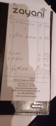 Hands down the absolute WORST Indian food we've ever had - terrible slow service - the place was empty when we went in (but they'd only just opened at 5.30, so that wasn't unusual) - considering we were the only two people there, the food took ages to come - they did bring popadums right away with a host of condiments, which seemed very promising (6 pounds) - the korma 10.95 was the tiniest portion ever, arrived luke warm, the pilar rice was fine , a small portion and not worth the price they charged us, 3.95, the mango lasso was delicious (best part of the meal) and was 6.90 AND he forgot about the naan! I had to go and remind him twice, as we'd almost finished our food - he then brought the naan which was HUGE- but very unlike a naan - very thick and heavy - I was stunned when he charged us for it considering we'd almost finished our meal when he brought it 2.95. No wifi either so we couldn't even call uber (we're visiting from overseas) - he had to call a taxi to get us home - for 30 pounds, it was the most expensive and the absolute worst indian meal ever. The taxi driver told us that next time, go to Sipson Tandoori restaurant. Worst indian meal ever. AND I'm just checking their menu prices online versus what they charged us - their korma says 6.95 on their website - THEY CHARGED US 10.95!!!! All other items were MUCH MORE expensive than is listed on their website menu. I couldn't even verify it then and there because we had no wifi, I couldn't even show the owner look, this is what your website says the prices are and look what you charged us. We were CHEATED by these people. I am astounded - just because we are tourists and they think we are stupid, they can post prices on their website and then charge us whatever they want. They didn't want to give me a copy of the itemized bill, so I took a photo, to prove that they are charging a lot more than their website says the prices are. UNACCEPTABLE.