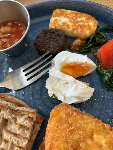I have been to this cafe and continue to visit often, especially for a cup of coffee to work during weekdays but the two times i went here for breakfast i was really disappointed. first time we got a waffle to share and it did take quite a while to come out and it tastes okay but it was a little too hard for me. I prefer a softer waffle. Second time we ordered a shakshuka and a farmers breakfast and the eggs were unfortunately just not doing it for us. Mine were really raw (i don't mean the yolk- i like a runny yolk but when the white of a poached egg is completely translucent then it's clearly raw still). The poached eggs also have a tendency to taste vinegary. The staff are really lovely though! And for a hot drink it is a great cafe! Just maybe not such great breakfast. The pancakes were delicious though if it were cheaper maybe it would...